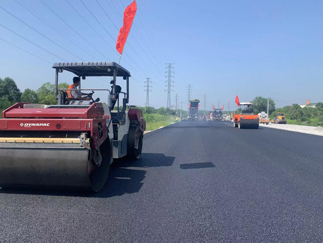 合六南通道合肥段东联合肥,西接河南,途径肥西县、金安区、裕安区、金寨县等地,沿线分布肥西县产城融合示范区、裕安经济开发区等产业集中区,其中S366合六南通道建设工程01标全长9990米,路面宽度28.5米。施工期间,合肥路桥克服疫情防控影响、持续高温天气和材料供应紧张等带来的诸多困难,历经40天的连续作业,负责路面施工作业的安徽和路公司顺利完成11万吨混合料的生产以及摊铺,全线率先完成沥青路面施工任务,再现了合肥路桥能打“硬仗”,擅打“硬仗”的风范。